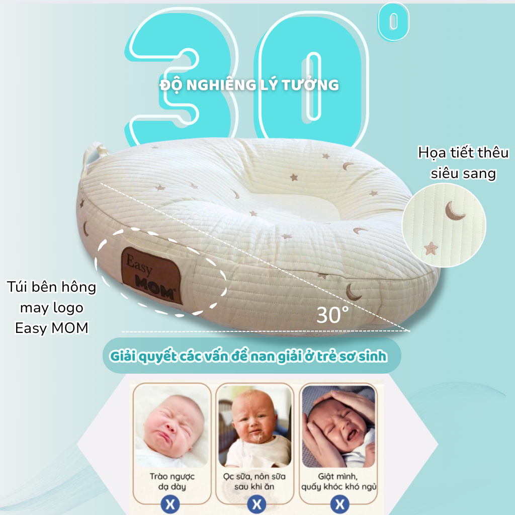Gối chống trào ngược là vật dụng quan trọng giúp hỗ trợ tư thế nằm an toàn cho trẻ sơ sinh. Tuy nhiên, không phải loại gối nào cũng có độ dốc phù hợp và thiết kế đúng với cấu trúc cơ thể còn mềm yếu của bé. Chính vì vậy, gối chống trào ngược Easy MOM hình quả lê được xem là lựa chọn đáng cân nhắc nhờ thiết kế công thái học, độ dốc chuẩn 30 độ và khả năng sử dụng lâu dài cho bé đến 15 tháng tuổi.